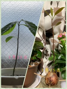 伸びた花、カット。アボカド水耕栽培から土へ植え替え。スッキリ。